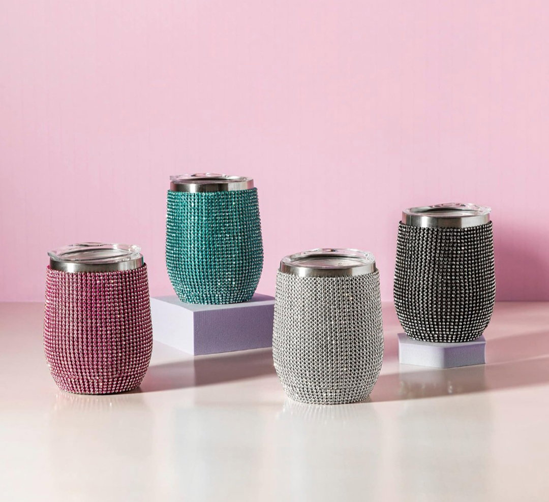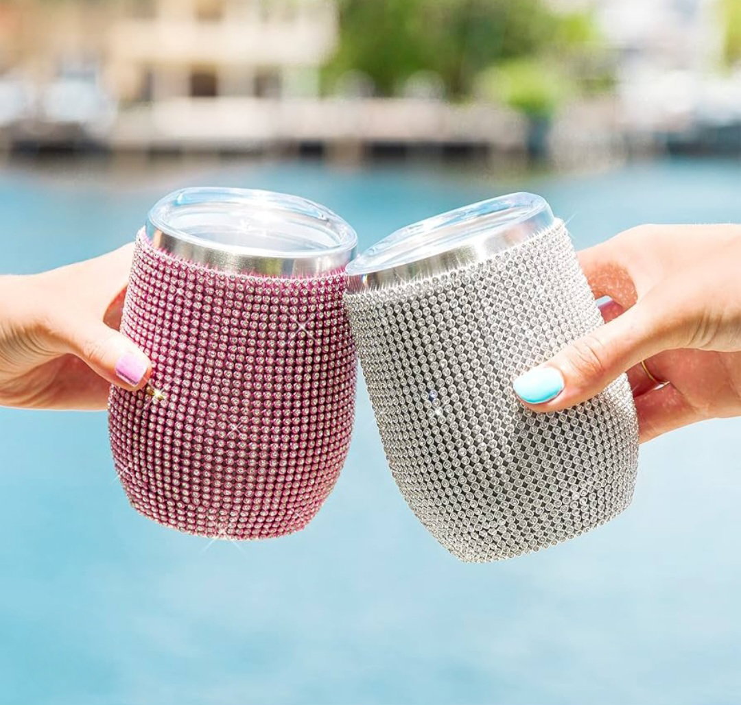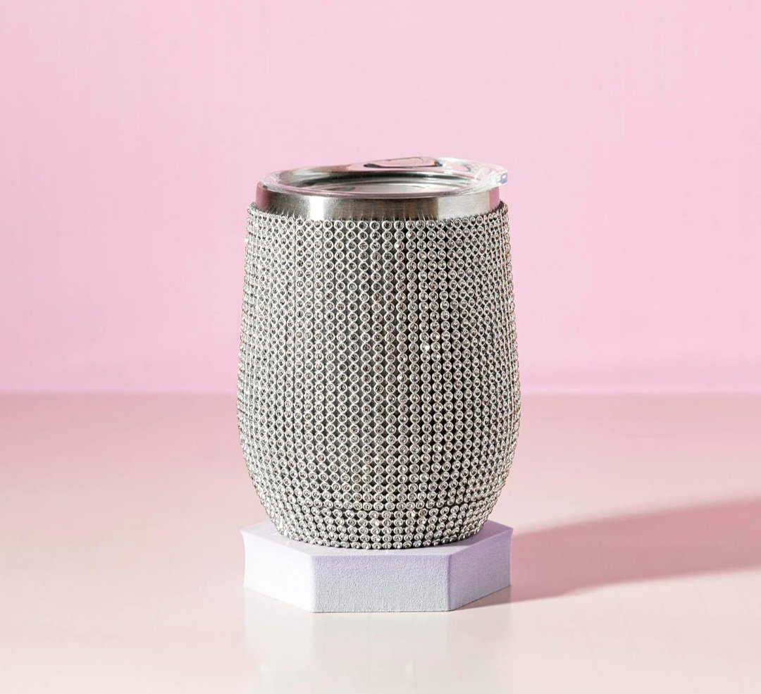 BRILLA: Deslumbrada con más de 2.500 diamantes de imitación brillantes, esta épica copa de vino para llevar es perfecta para el uso diario u ocasiones especiales.