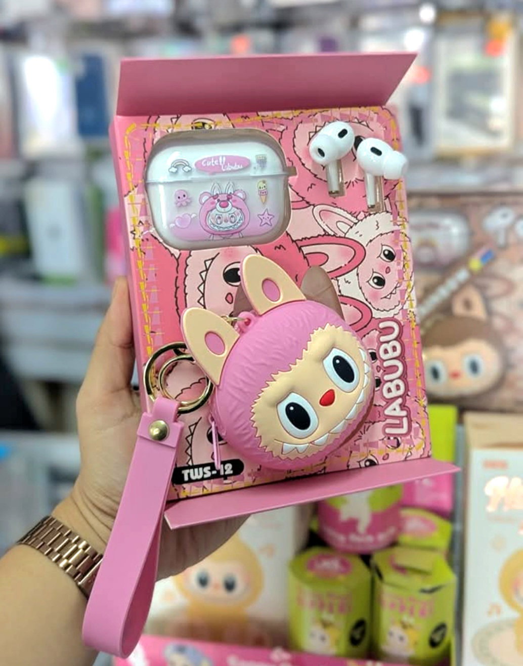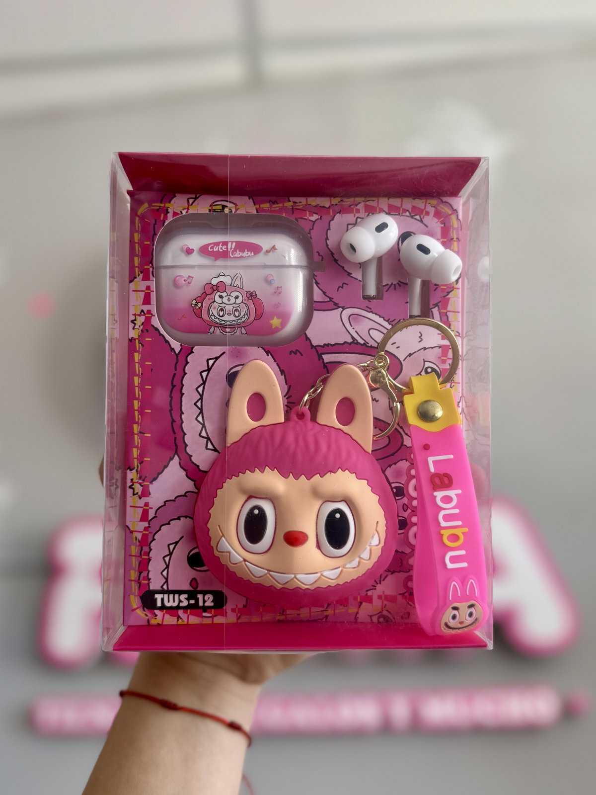 Auricular labubu con llavero de regalo porta airpods. Cable usb de carga