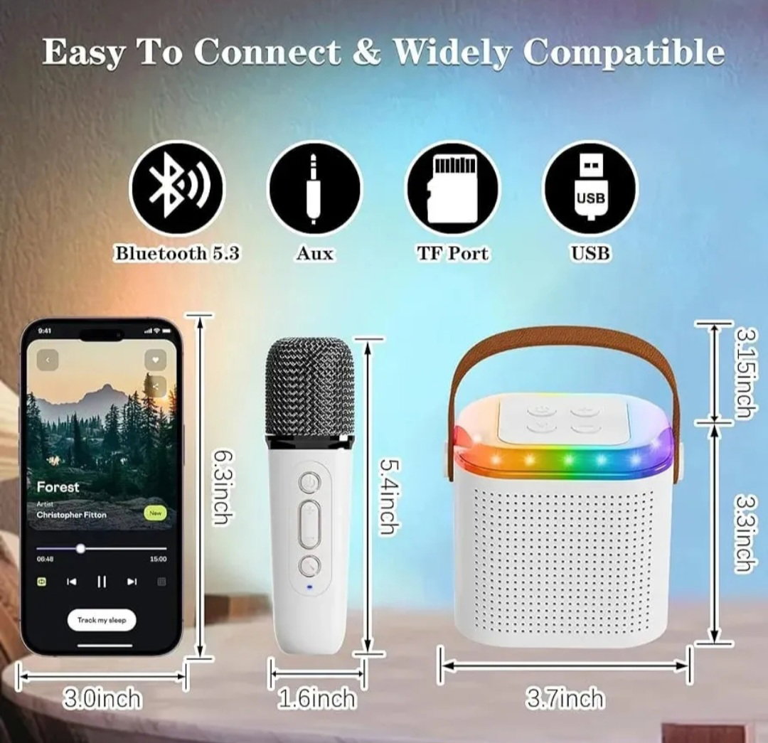 Disfruta de una experiencia de karaoke inigualable con el Parlante Bluetooth Karaoke Portátil. Perfecto para niños y adultos, este sistema compacto y potente es ideal para cualquier ocasión.