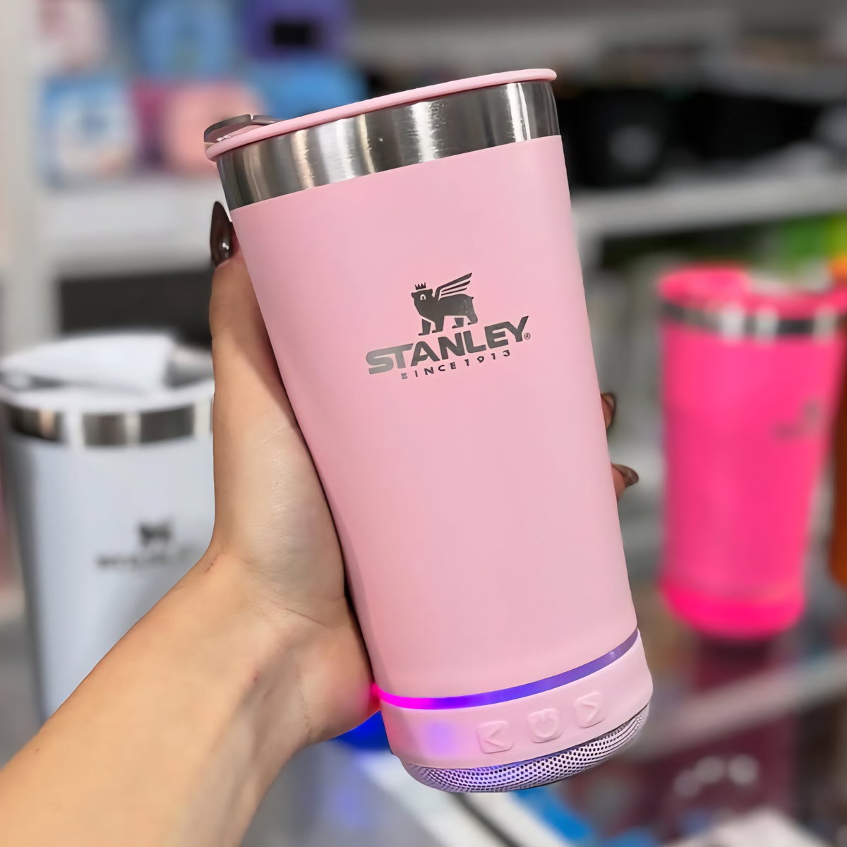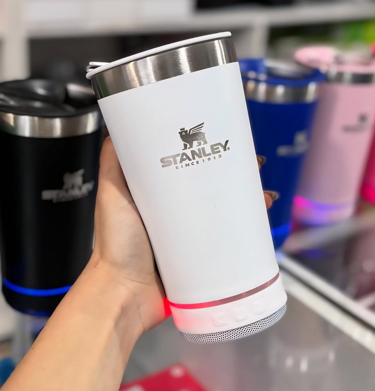 Vaso térmico, tapa con destapador STANLEY. CON PARLANTE . CARGA USB. 475 ml
