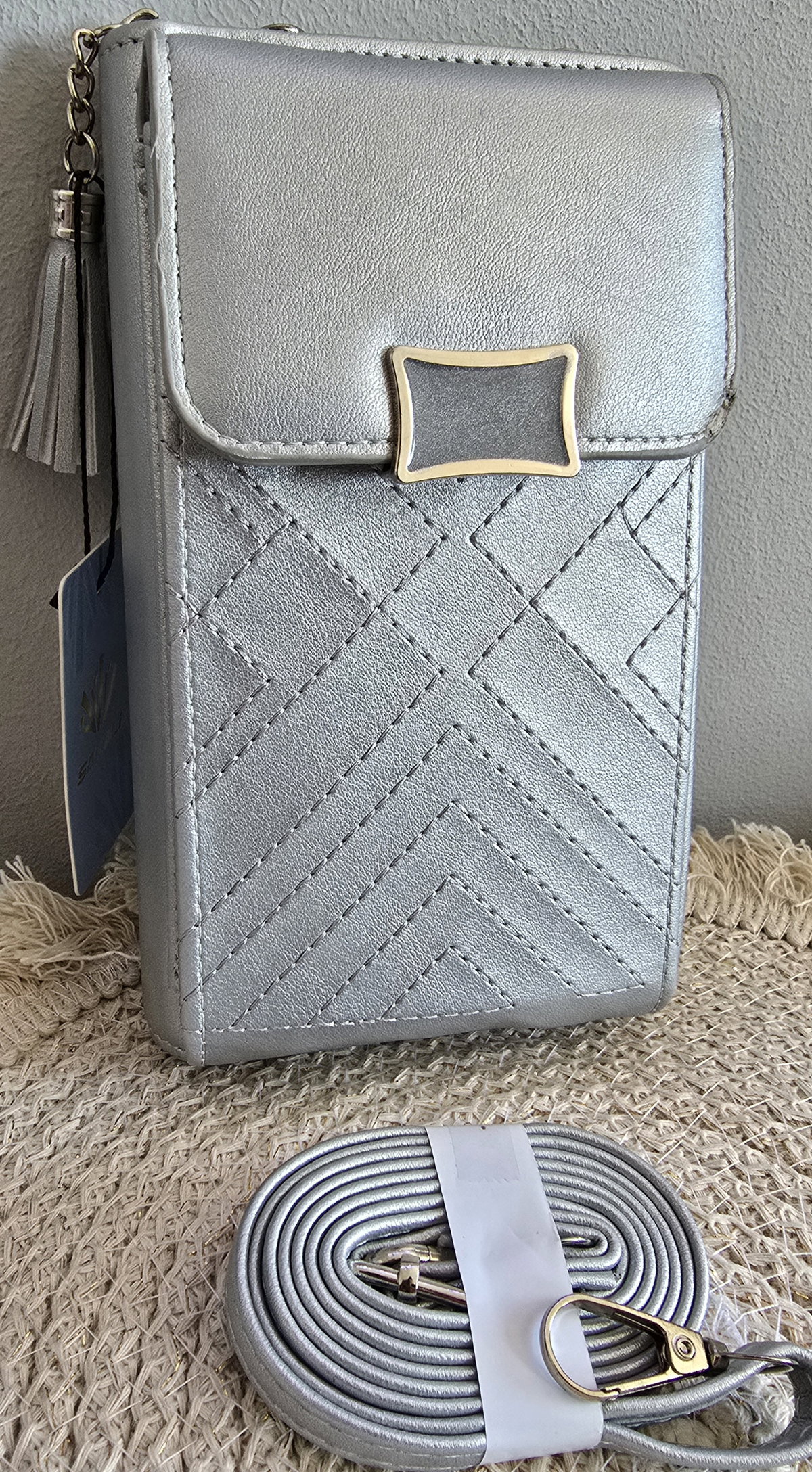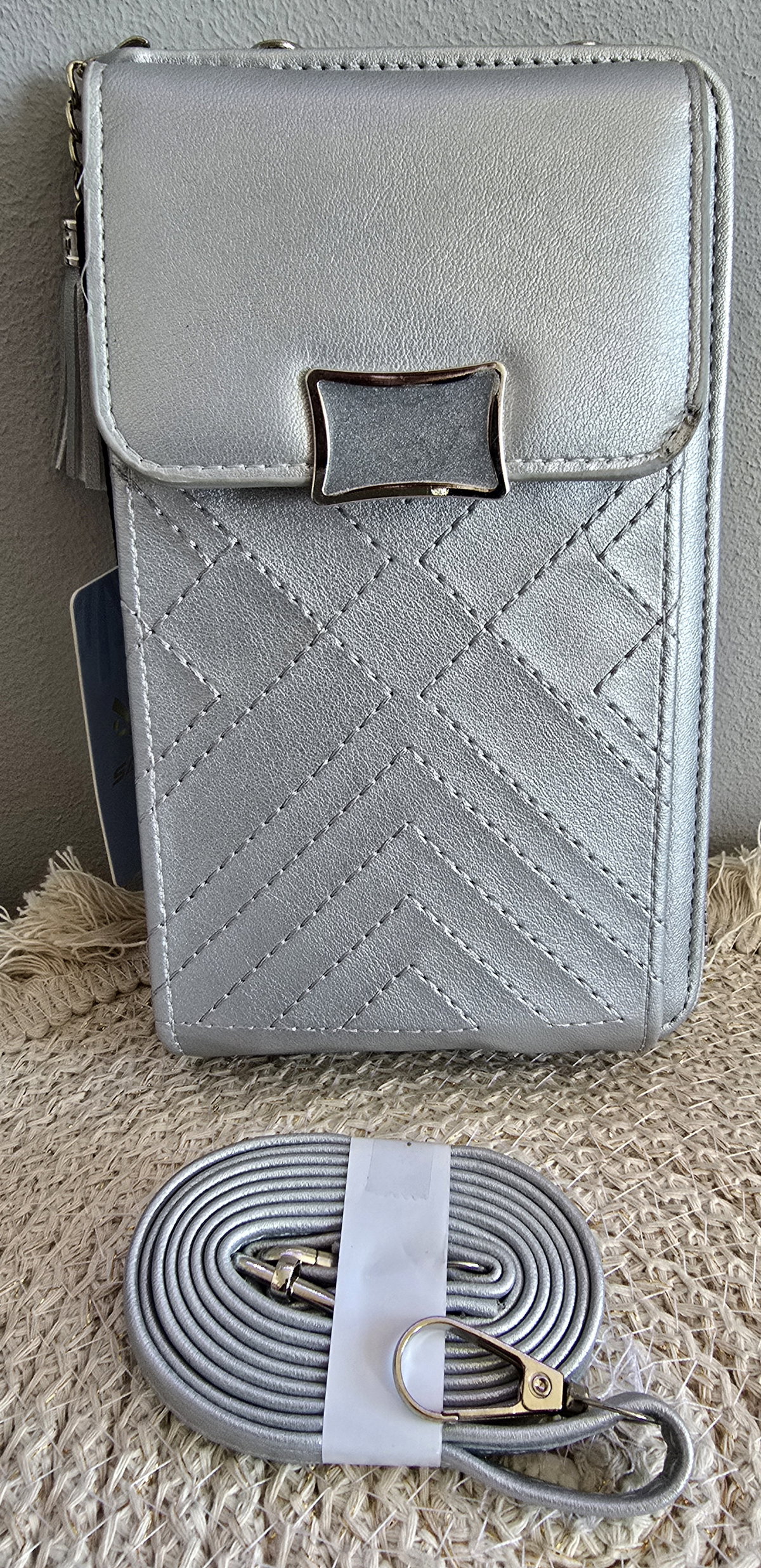 Portacelular plateado CON DETALLE PRECIO COSTO