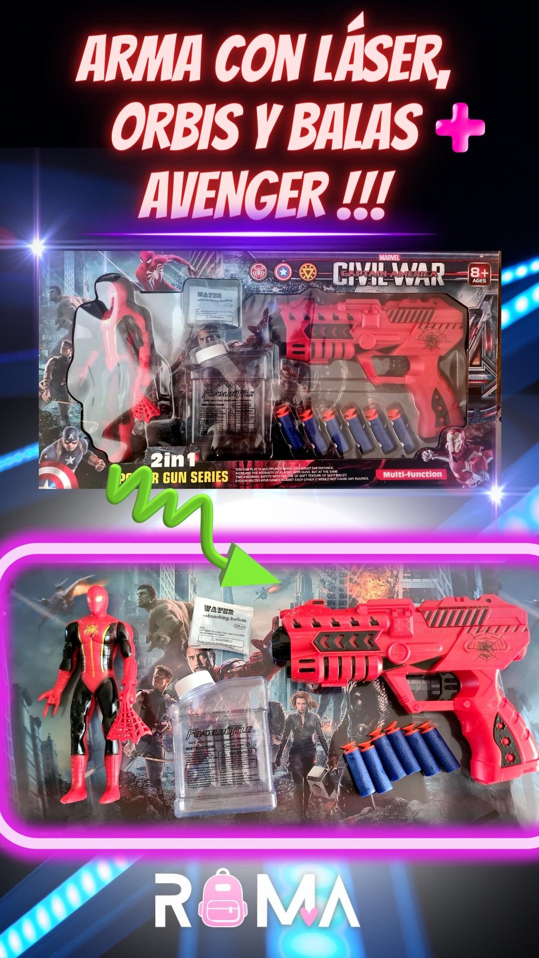 Hombre araña Spiderman con luces + arma con láser + balas orbis+balas punta ventosa