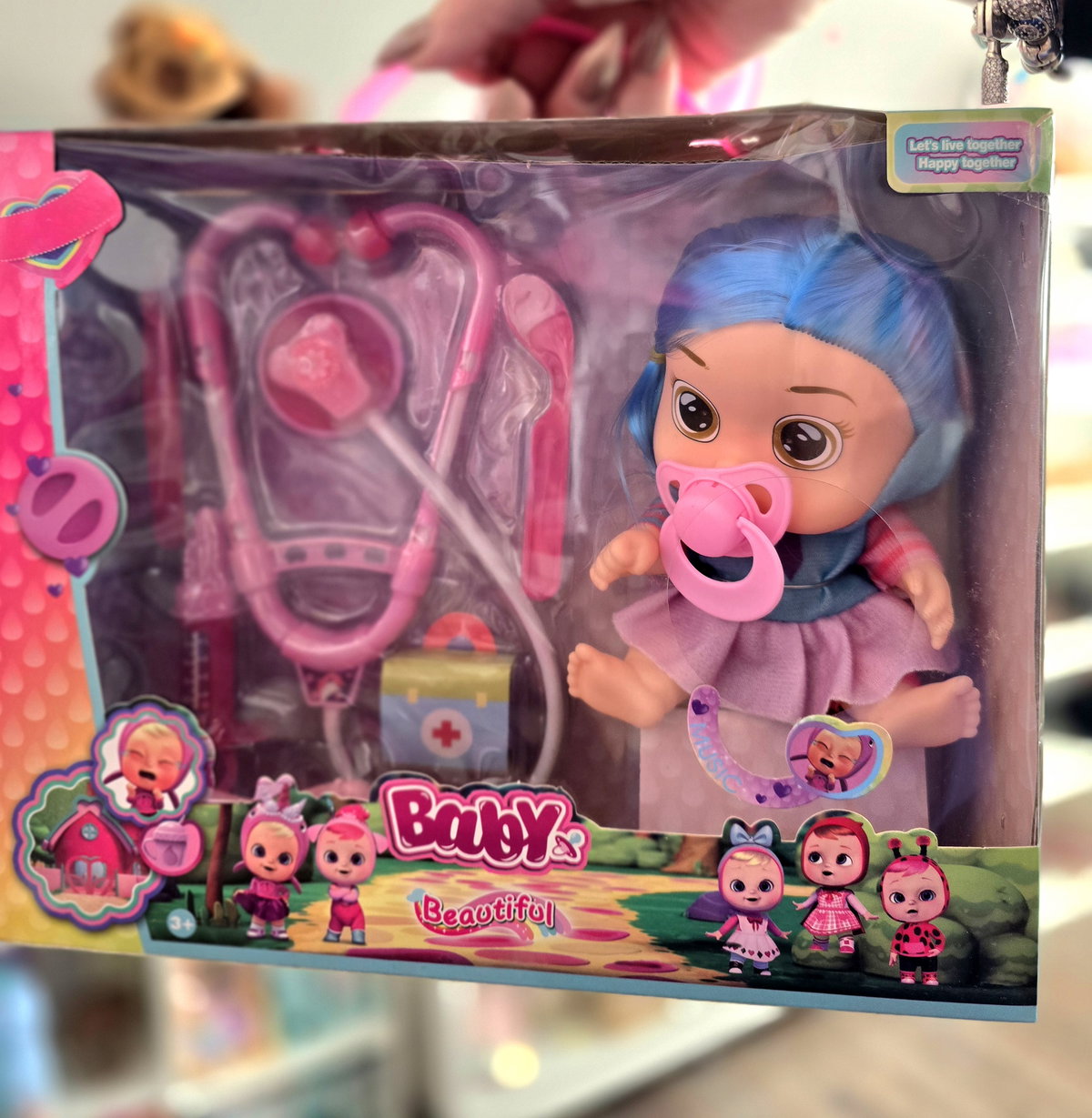 Cry babies mediana con sonido (llora y habla)+accesorios + pelo