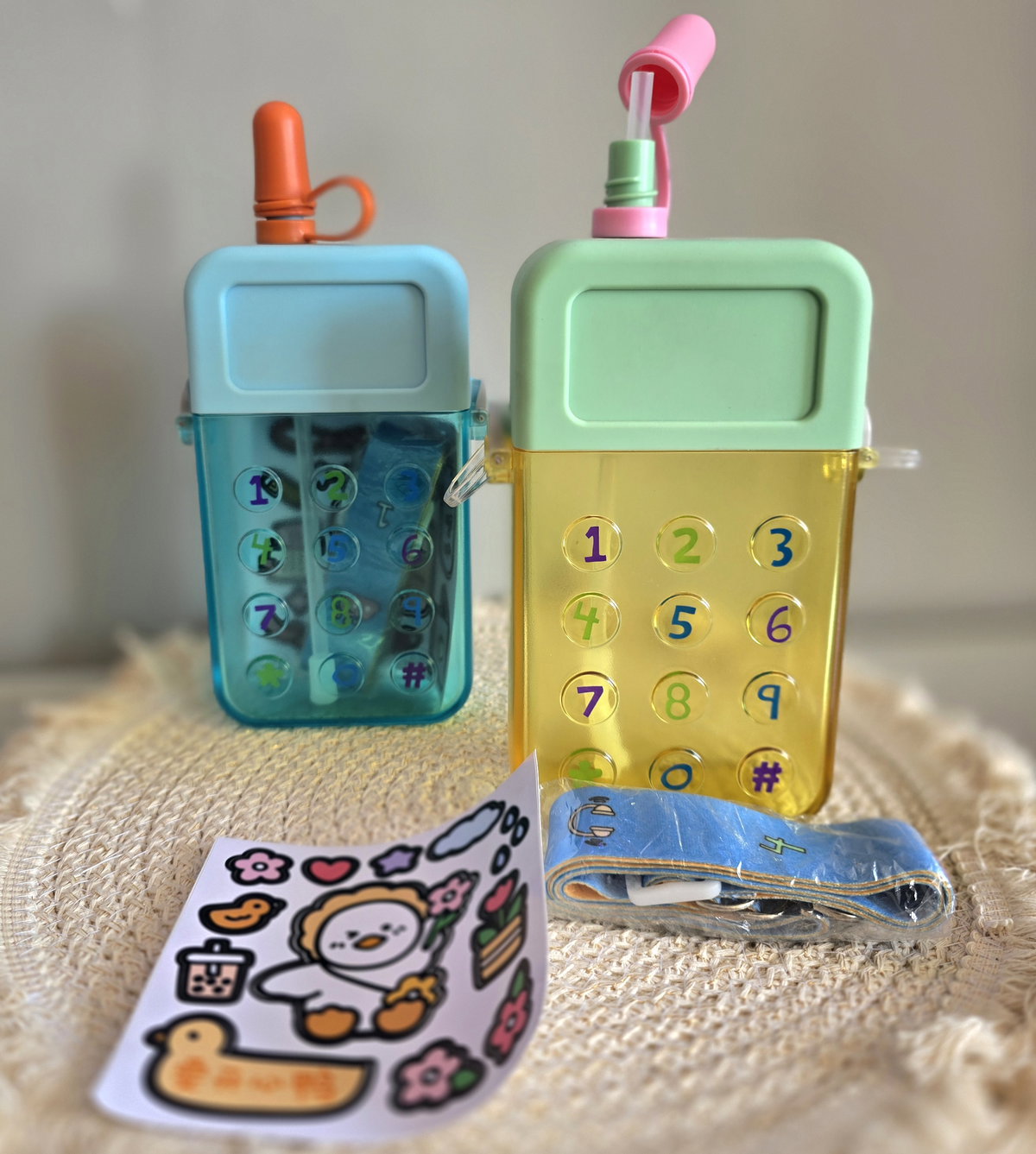 Pico tapa rosca y correa regulable. Con stickers resistentes al agua y stickers 3d. Capacidad 300ml