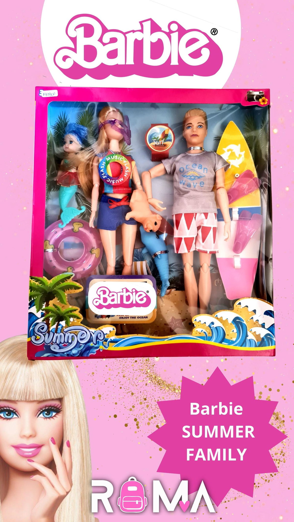 Barbie Beach family con sonido y accesorios