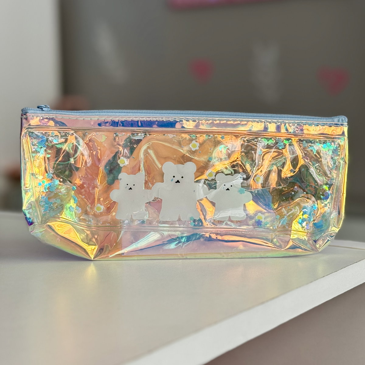 Cartuchera Ositos transparente iridiscente (efecto agua con purpurina)