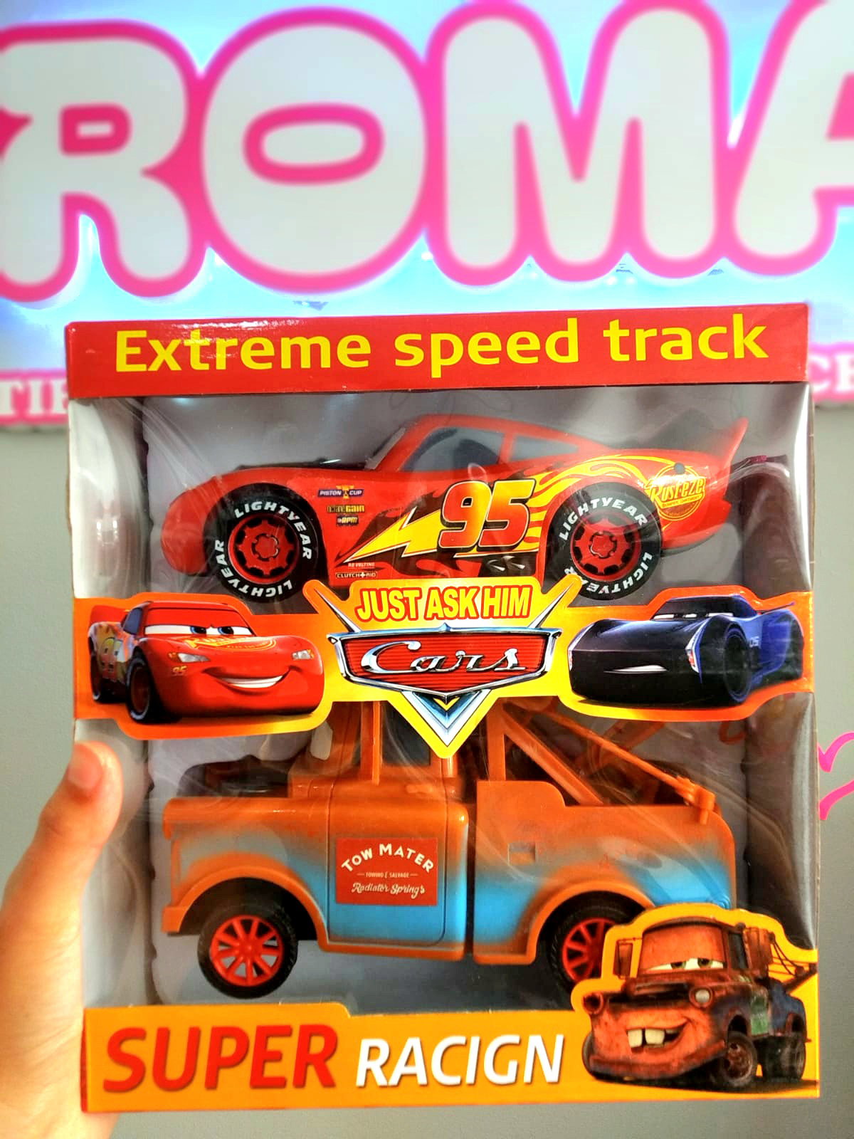 Autos CARS gigantes . RAYO MCQUEEN Y GRUA MATE a fricción